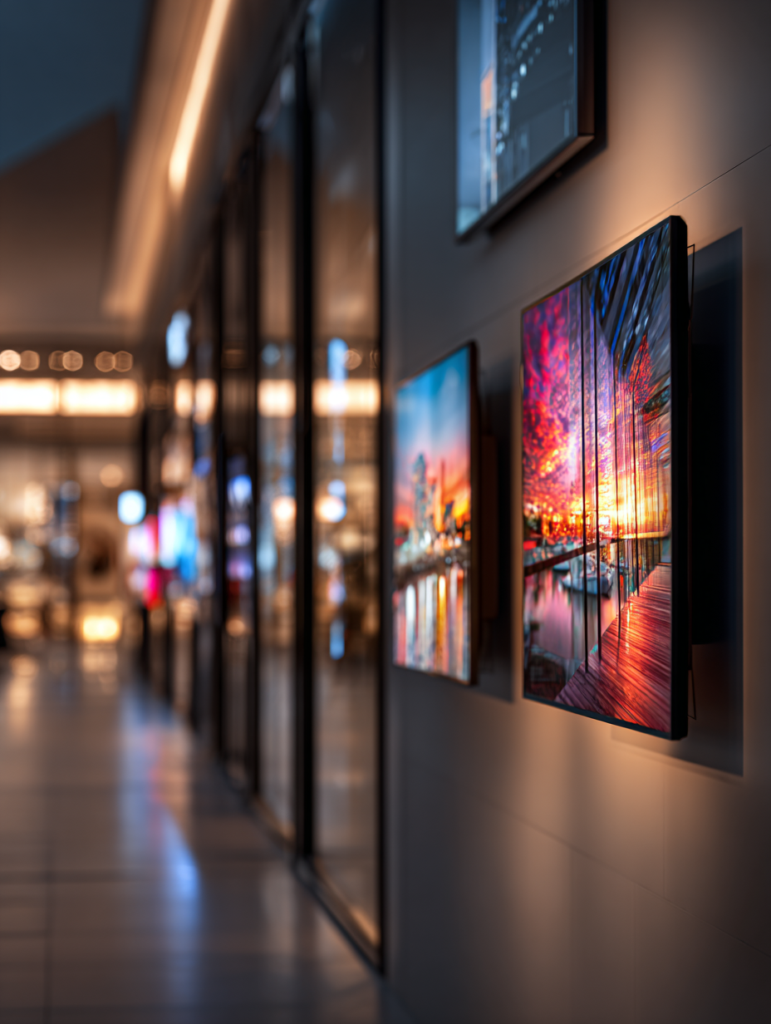 Inside a retail environment, wall mounted screens transform dead wall space into dynamic, revenue-generating advertising real estate. Promote products, run video campaigns, display pricing, or cross-sell services — all managed remotely and updated in real time. Screens can be grouped by zone, so different areas of your store show relevant, targeted content simultaneously.